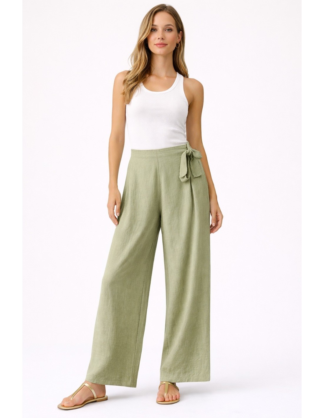 Pantalón de bambula con lazada y cintura elástica.